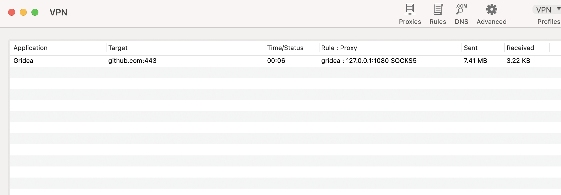 Finally, open our Gridea software and click sync. We can see the request process on proxifier: