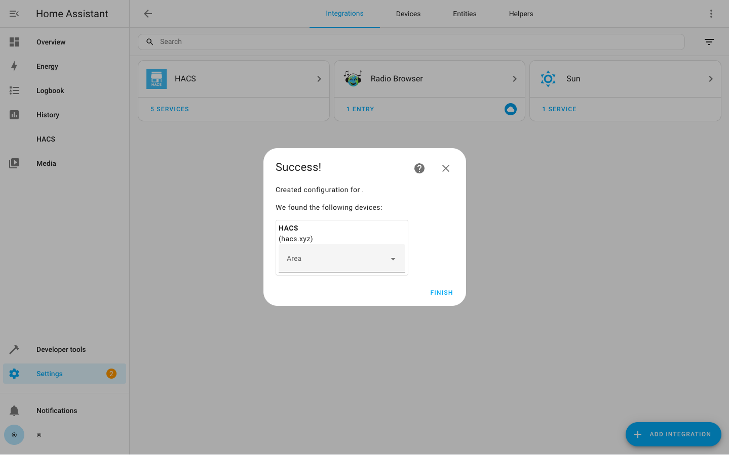 - You need to clear your browser cache before HACS appears in the list.