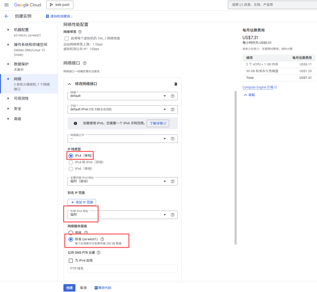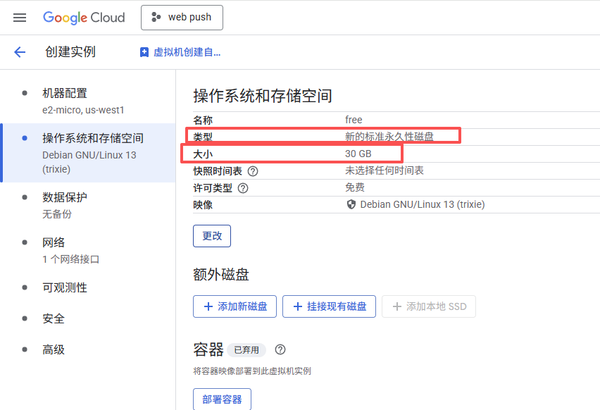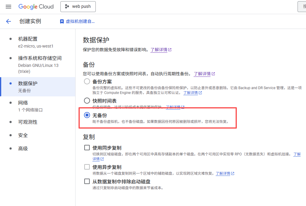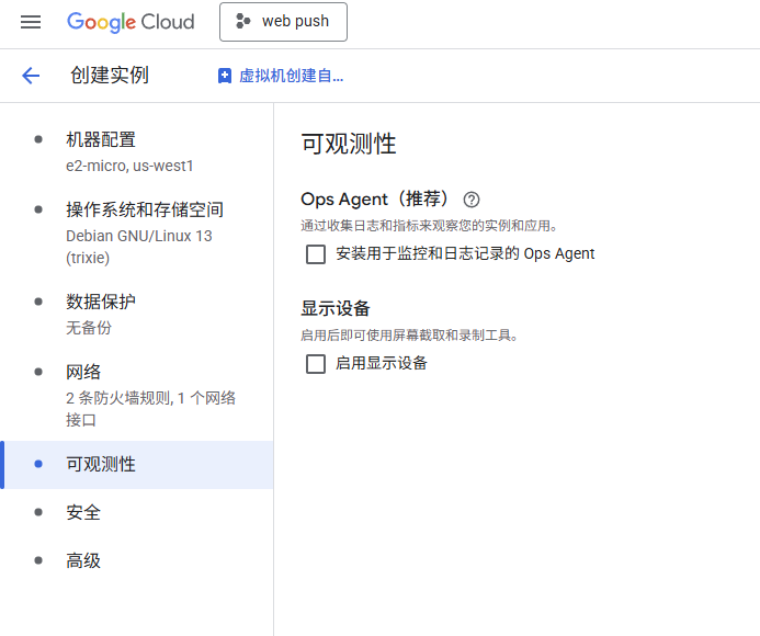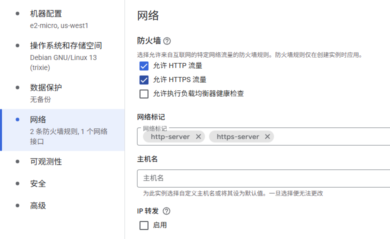 但有一点是例外,akari、cloudflare、fastly这三家cdn厂商是和谷歌有合作,连接到他们的流量是要钱的,所以我们这个服务器是不能连接这三家cdn。我知道很多人cloudflare都不能连,还能干啥,有一说一,确实是会限制可玩性,但你当个个人小型服务器,例如签到、自建笔记这些不都行,玩法也是有的。登录谷歌云,创建虚拟机,选择俄勒冈地区,当然其他三个区域也可以,但是延迟要比俄勒冈高,没必要选。实例规格选择e2-micro,硬盘一定要选择“新的标准永久性磁盘”,只有这个才免费,大小30g,镜像我建议选debian13,关闭数据保护,备份也是要花钱的,不关等着被反薅。网络这里可以先配置防火墙,允许80和443端口,当然你这里不开也行,后面去控制台防火墙配置也行,默认是放行了22、3389端口以及icmp。但还需要修改网络接口,默认ipv4单栈,ipv6是要钱的。公网ipv4选择临时,这个意思是停止后ipv4会变动,不是固定的,那为什么不固定呢?要钱,但只要服务器不停止,这个ip是不会变的。网络服务层级选择标准,这样就可以每个月200g免费流量。没啥要求记得把可观测性也给取消了,这玩意会给服务器按照额外的插件,没啥用。最后确认无误创建即可。有人会问,旁边有估算费用,要不话花钱。。。。当然是不用花钱啊,要花钱我还说什么免费服务器。当然你怕花钱,那就时不时盯着账单,如果有花费立马取消实例就行,我只能说我目前是没被扣费,因为也有人偶尔会每个月有个零点几美元的扣费,但基本上是不小心连接到那三家cdn导致的,不行就给卡限额。对了,实例建好后千万不要开启虚拟机管理器,这玩意也是要花钱的.....上面说了,这个免费服务器是不能连接akari、cloudflare、fastly这三家cdn,不然会算流量钱,所以想要真免费用这个服务器,我们还需要通过配置防火墙禁止服务器连接这三家cdn的ip,实现定向封锁。一般情况下cdn厂商的ip是不会变动的,像cloudflare都已经好几年没变动ip了,所以只要配置好阻止访问对应ip基本上就不用担心。常规是直接在谷歌云控制台内配置防火墙,但是那样太麻烦了,好在某论坛大佬制作了iptables配置脚本,只需要在系统内运行即可阻止对应ip。当然如果觉得还是控制台内配置防火墙也可以,自行收集对应cdn的ip地址即可,官网都有的。进入云服务器控制台,新建的服务器一开始是只能在控制台ssh登录,依次输入以下命令,完成配置,特别提醒,一定一定要先更改软件源,因为debian默认源是走cloudflare,得花钱。sudo passwd#配置root密码,默认不是root用户且无密码